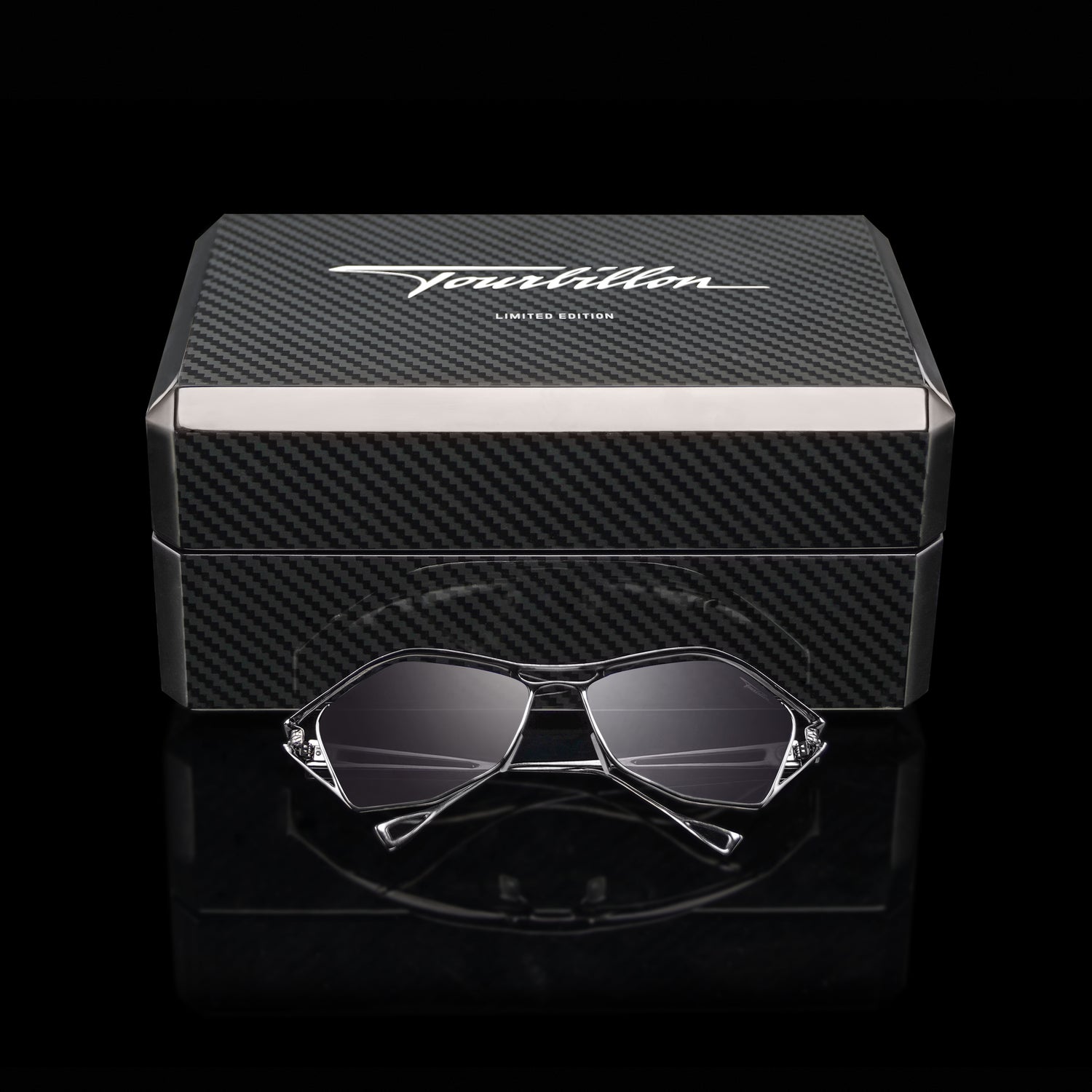 The Limited-Edition Tourbillon Sunglass – a jaw dropping 3D-printed titanium frame inspired by the aerodynamic rear design of the Tourbillon hypercar. In line with Ettore Bugatti’s famous words – “Nothing is too beautiful” – the frame is not only engineered for supreme strength and flexibility but is also sculpturally striking. In line with the Tourbillon vehicle’s extremely limited production, only 100 pieces will be produced and distributed globally, each delivered in a custom carbon fiber collector’s box with a 3D-printed polyamide case, modeled after the vehicle’s 3D-printed suspension.