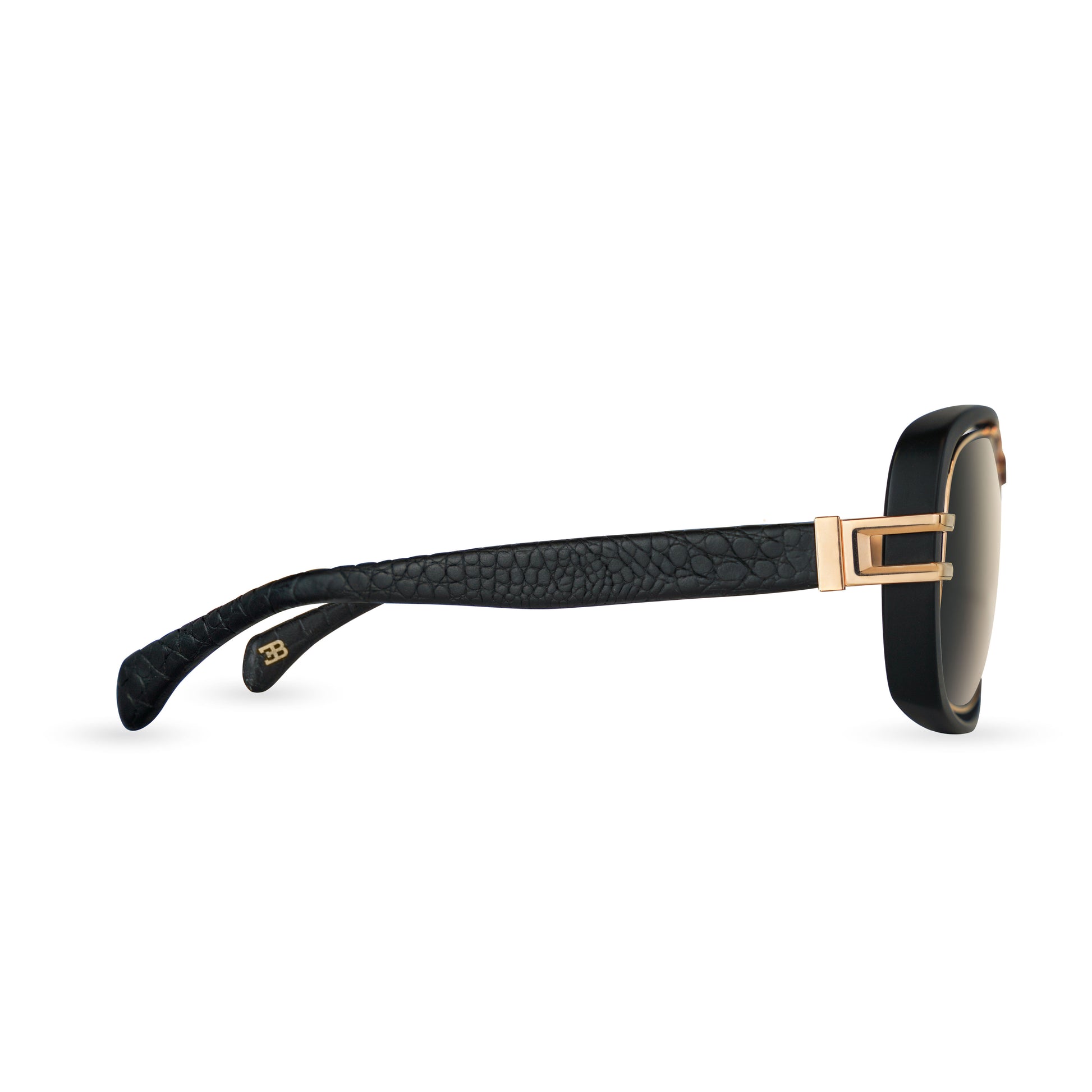 - Embossed Genuine Leather Temples