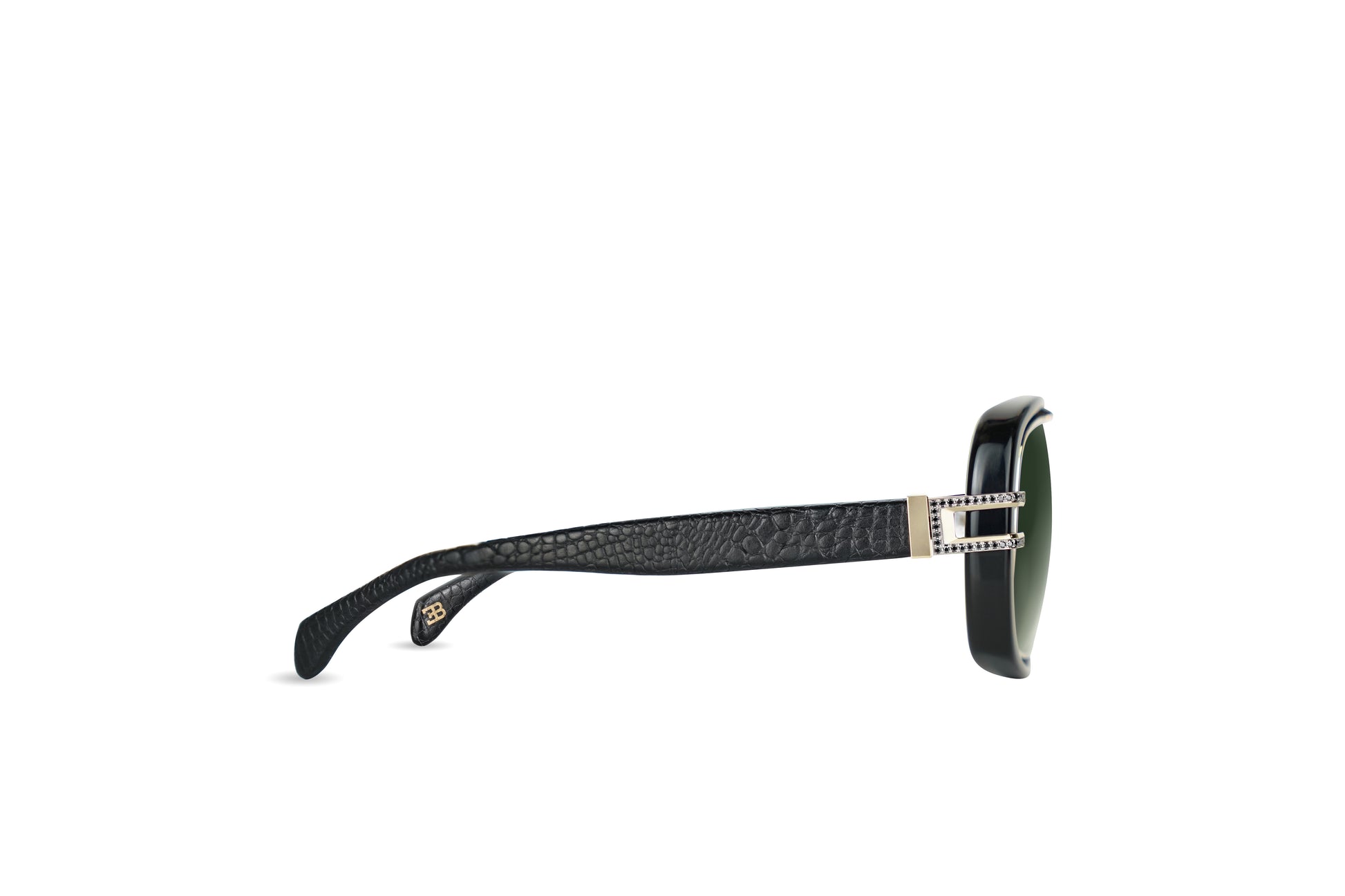 - Embossed Genuine Leather Temples