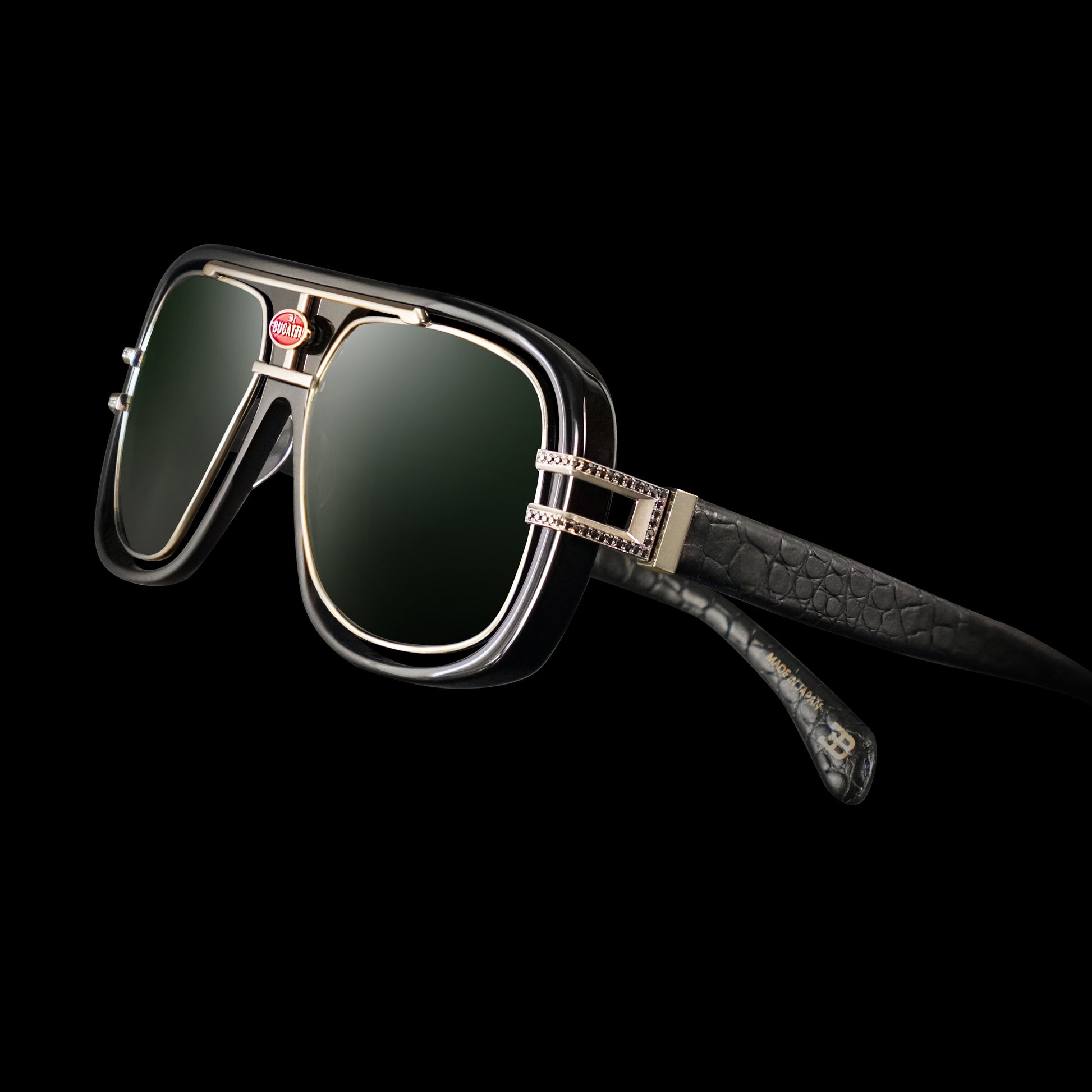 Each piece of BUGATTI Eyewear is meticulously hand crafted in Japan and finished with 24K gold, .925 sterling silver and palladium coatings. The use of genuine leather, carbon fiber and macassar ebony wood is unique to the collection and pays homage to Bugatti's incredible automobiles.